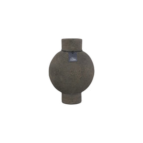 Dankzij de compacte afmetingen – 22 cm hoog, 17 cm breed en 15 cm diep – komt deze vaas prachtig tot zijn recht op een vensterbank, een ondiep dressoir of als stijlvol accent op een plank. De vaas is niet helemaal bol, maar heeft een ovale/platte vorm wat zorgt voor een moderne uitstraling, terwijl het aardewerk een warme, ambachtelijke sfeer toevoegt aan elke ruimte.